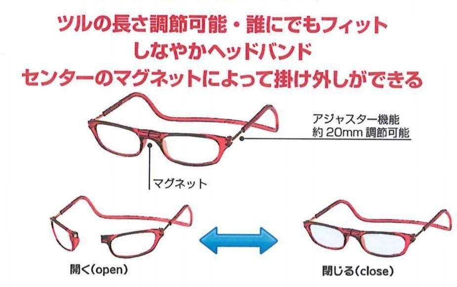 使わないときには首に掛けておけるスタイリッシュな老眼鏡で、置き忘れ防止にも効果的です。